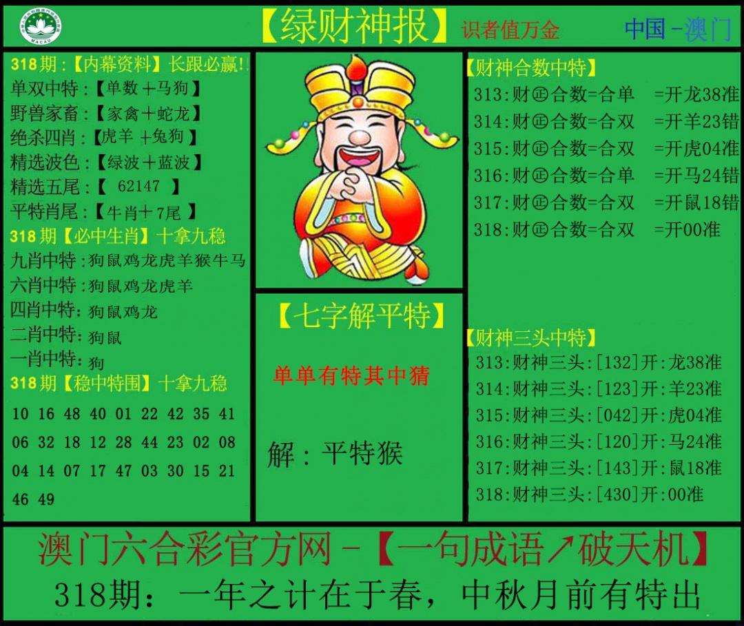 318期:【财神殿】→【主攻一码三中三】█彩民狂赚百万