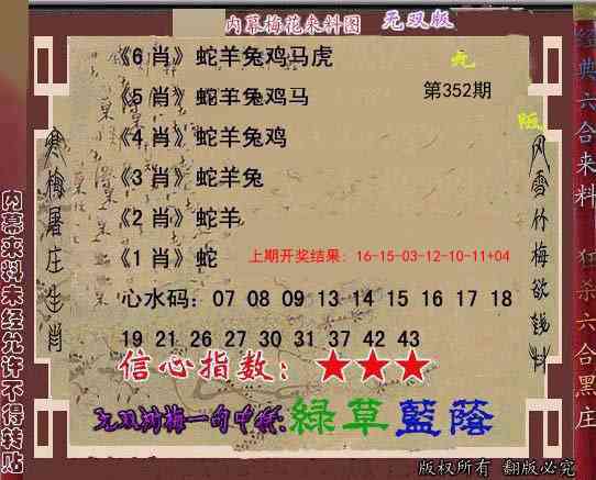 出售帖 352期:【大红大紫】 🀄【三码中特】 正版资料 大红大紫