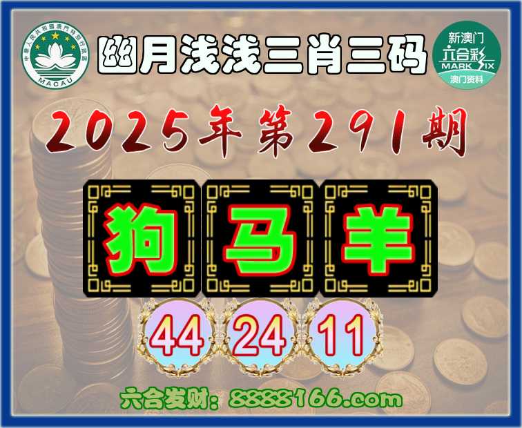 291期: 幽月浅浅 🍏三肖三码🍏【狗马羊】【44.24.11】开:狗44准
