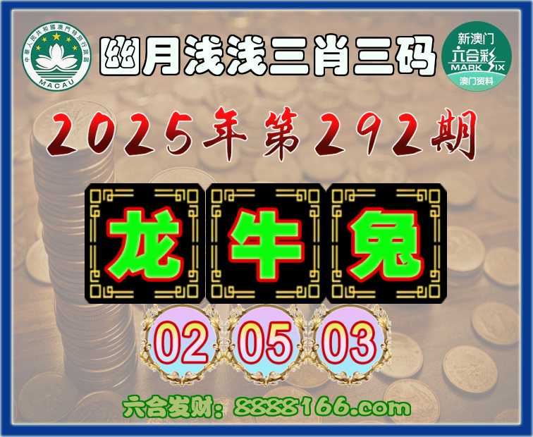 292期: 幽月浅浅 🍏三肖三码🍏【龙牛兔】【02.05.03】开:龙02准