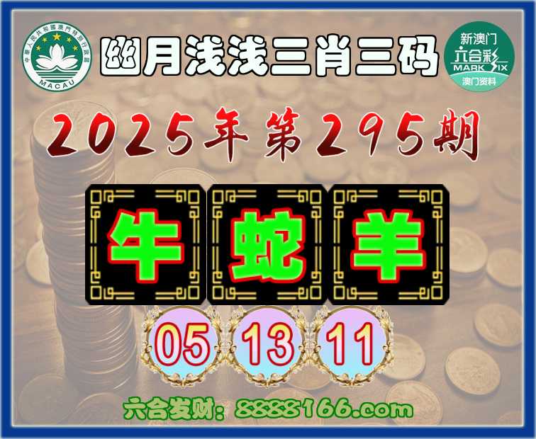 295期: 幽月浅浅 🍏三肖三码🍏【牛蛇羊】【05.13.11】开:牛05准