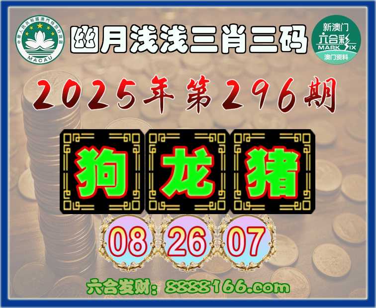 296期: 幽月浅浅 🍏三肖三码🍏【狗龙猪】【08.26.07】开:猴22错