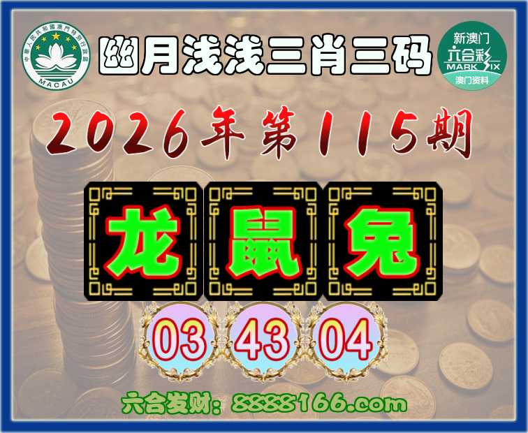 115期: 幽月浅浅 🍏三肖三码🍏【龙鼠兔】【03.43.04】开:兔04准