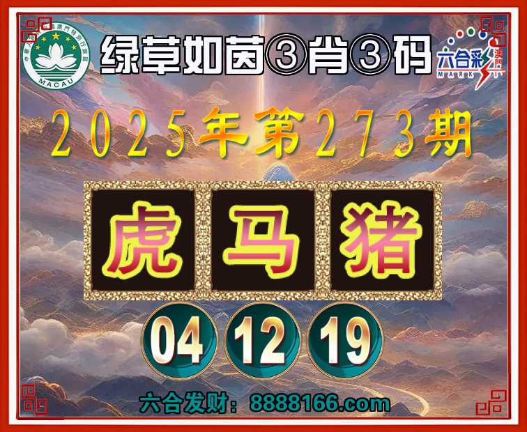 273期:『绿草如茵』 🏅③肖③码🏅【虎马猪】【04.12.19】开:虎04准