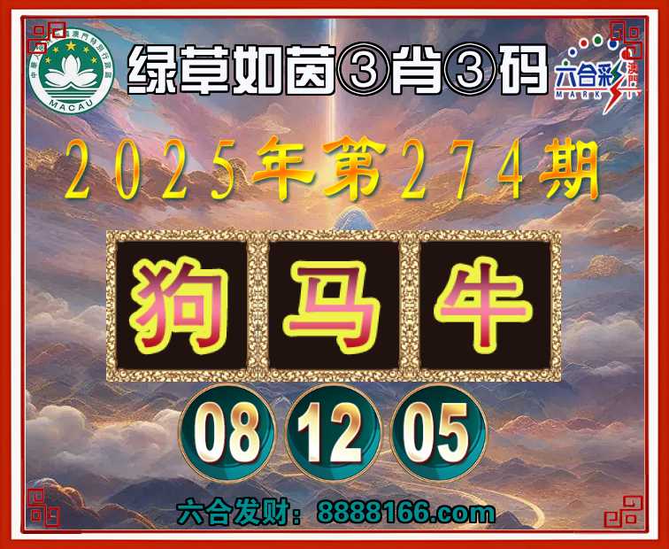 274期:『绿草如茵』 🏅③肖③码🏅【狗马牛】【08.12.05】开:狗44准
