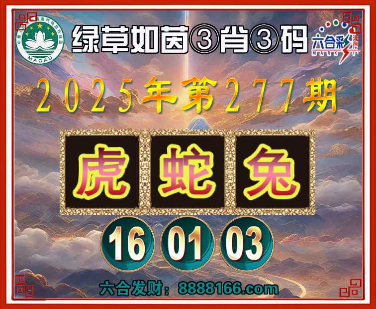 277期:『绿草如茵』 🏅③肖③码🏅【虎蛇兔】【16.01.03】开:虎16准