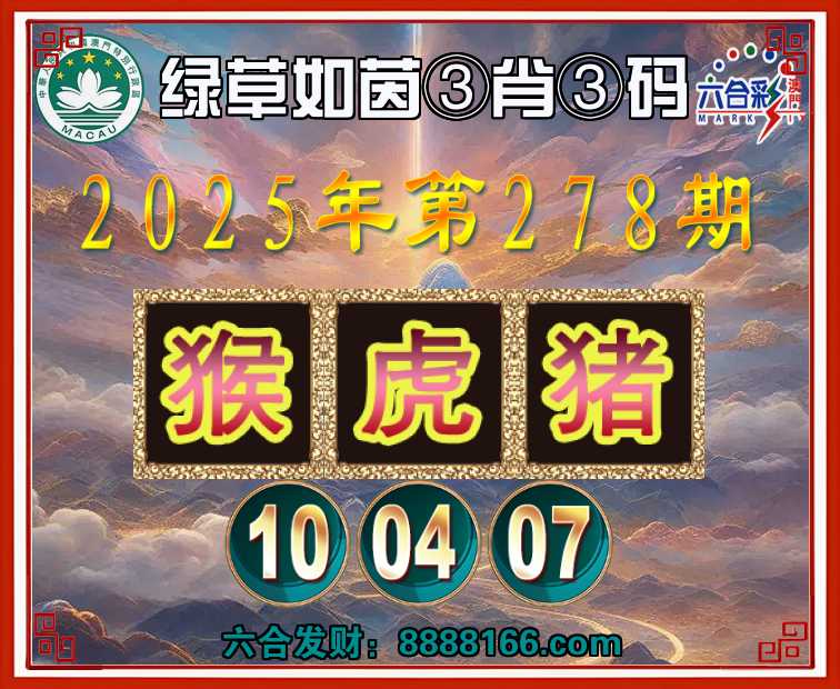 278期:『绿草如茵』 🏅③肖③码🏅【猴虎猪】【10.04.07】开:虎28准