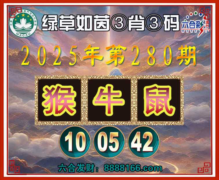 280期:『绿草如茵』 🏅③肖③码🏅【猴牛鼠】【10.05.42】开:鼠42准