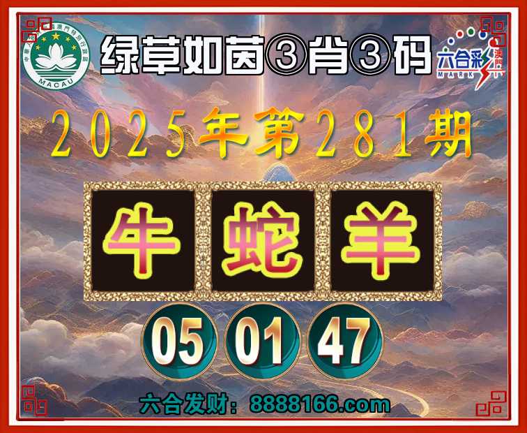 281期:『绿草如茵』 🏅③肖③码🏅【牛蛇羊】【05.01.47】开:羊47准