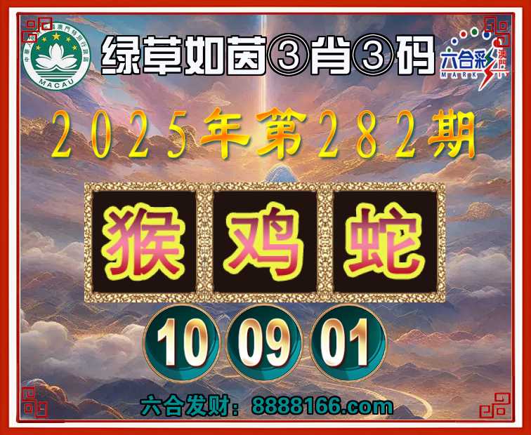 282期:『绿草如茵』 🏅③肖③码🏅【猴鸡蛇】【10.09.01】开:牛41错