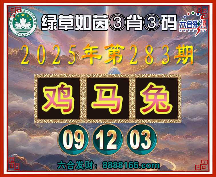 283期:『绿草如茵』 🏅③肖③码🏅【鸡马兔】【09.12.03】开:鸡45准
