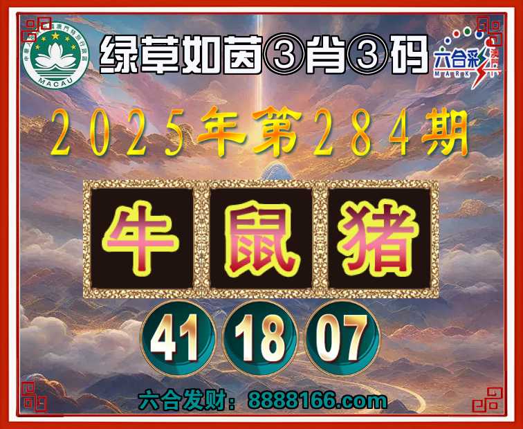 284期:『绿草如茵』 🏅③肖③码🏅【牛鼠猪】【41.18.07】开:牛41准