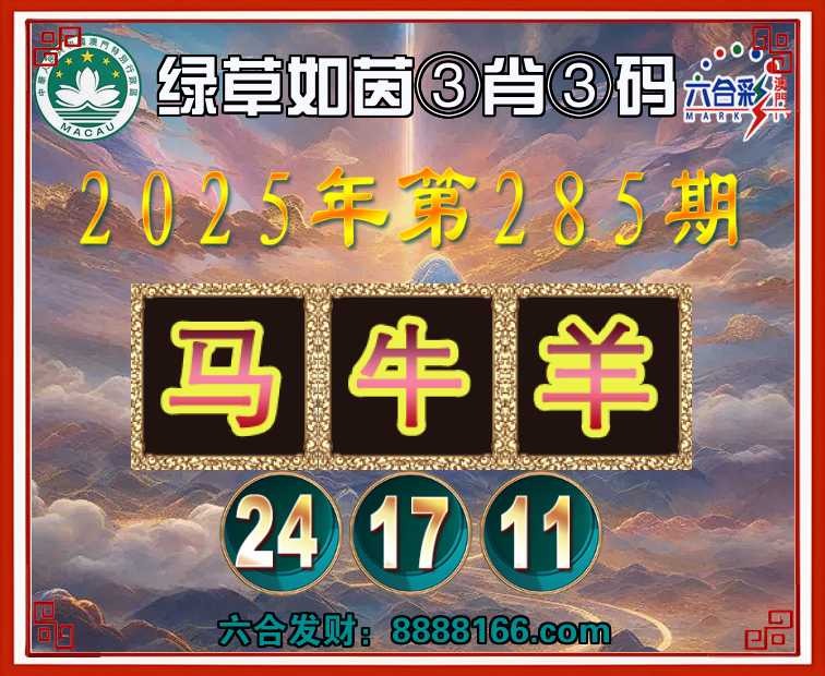 285期:『绿草如茵』 🏅③肖③码🏅【马牛羊】【24.17.11】开:马24准