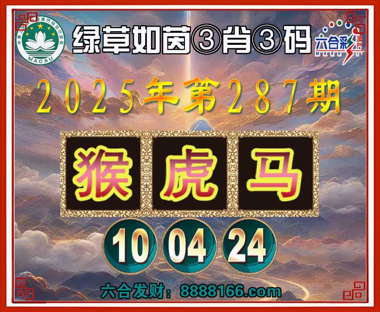 287期:『绿草如茵』 🏅③肖③码🏅【猴虎马】【10.04.24】开:猴34准