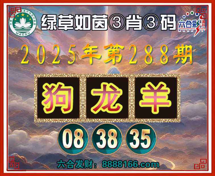 288期:『绿草如茵』 🏅③肖③码🏅【狗龙羊】【08.38.35】开:龙14准