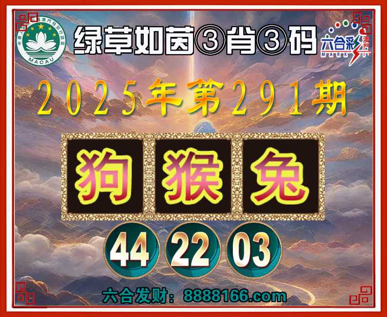 291期:『绿草如茵』 🏅③肖③码🏅【狗猴兔】【44.22.03】开:狗44准