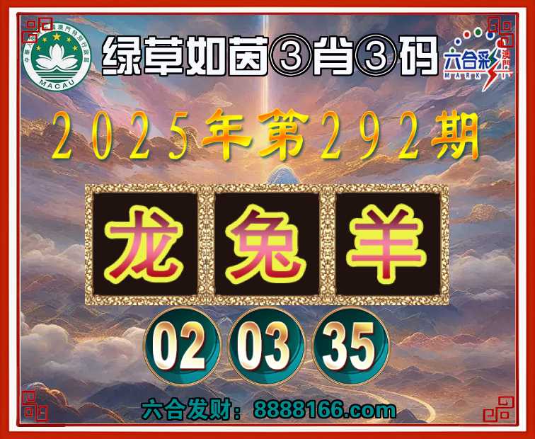 292期:『绿草如茵』 🏅③肖③码🏅【龙兔羊】【02.03.35】开:龙02准