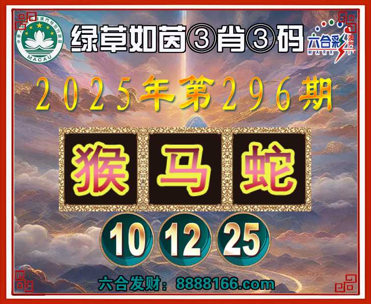 296期:『绿草如茵』 🏅③肖③码🏅【猴马蛇】【10.12.25】开:猴22准