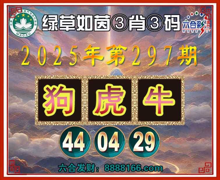 297期:『绿草如茵』 🏅③肖③码🏅【狗虎牛】【44.04.29】开:狗44准