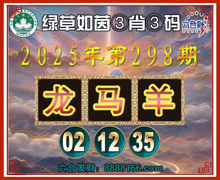 298期:『绿草如茵』 🏅③肖③码🏅【龙马羊】【02.12.35】开:羊23准