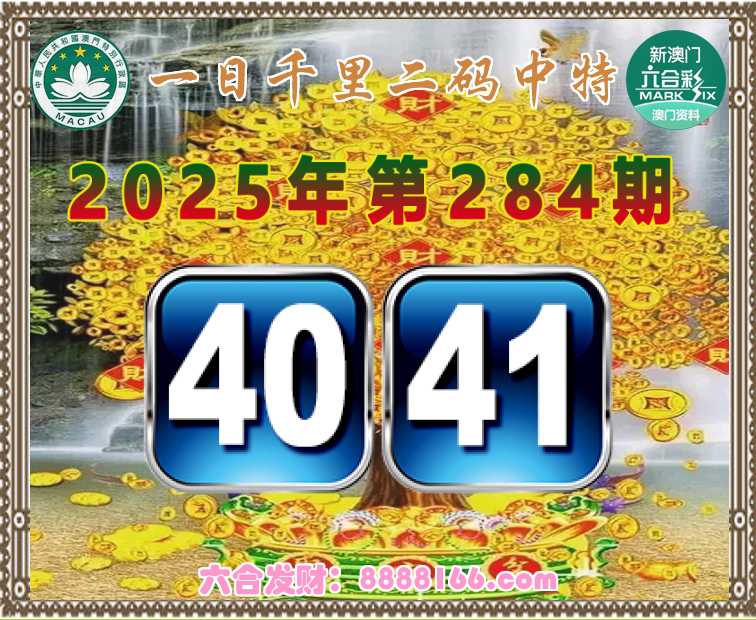 284期:【一日千里】 🍀二码中特🍀【40.41】开:41准