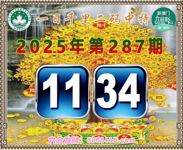 287期:【一日千里】 🍀二码中特🍀【11.34】开:34准