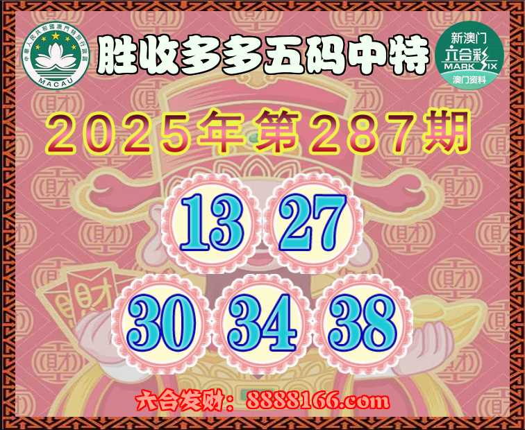 287期:『胜收多多』 ☺️五码中特☺️【13.27.30.34.38】开:34准