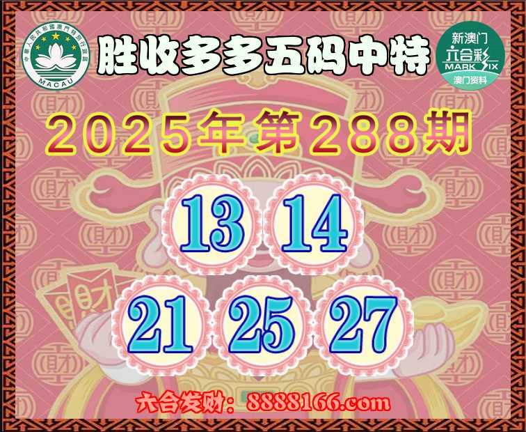 288期:『胜收多多』 ☺️五码中特☺️【13.14.21.25.27】开:14准