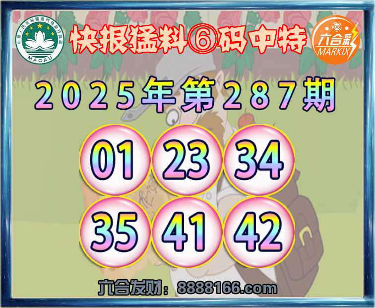 287期:《快报猛料》 🚣⑥码中特🚣【01.23.34.35.41.42】开:34准