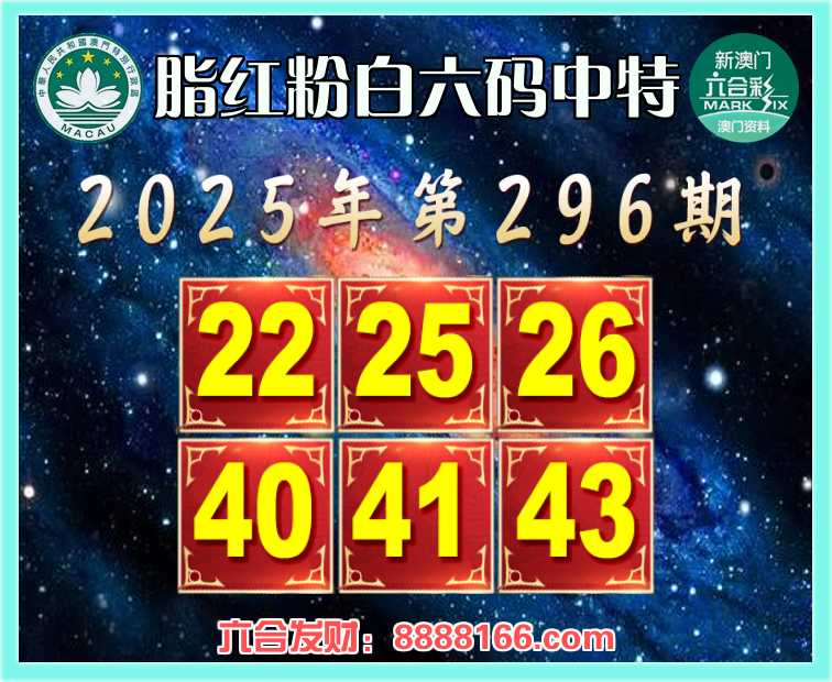 296期:【脂红粉白】 🍙六码中特🍙【22.25.26.40.41.43】开:22准