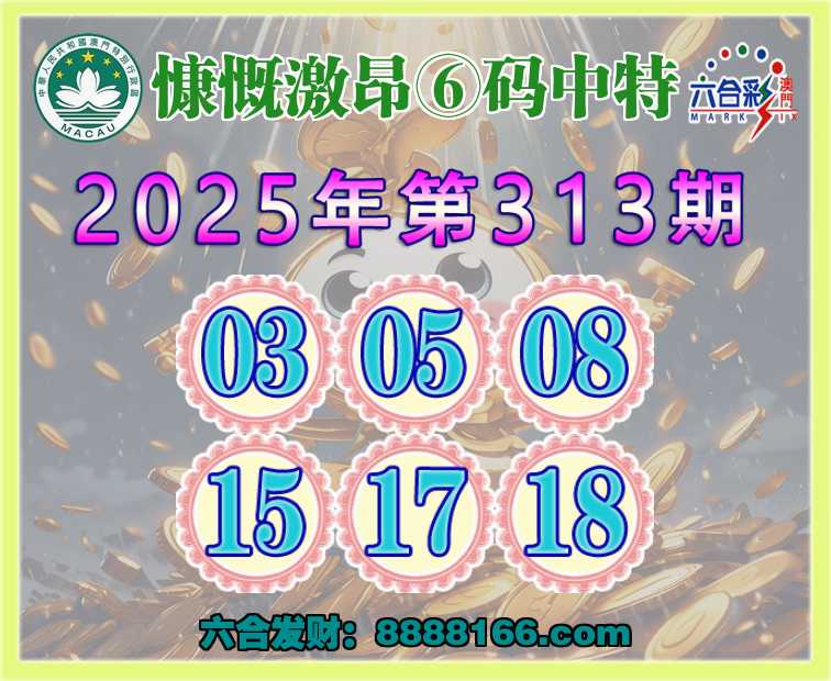 313期:【慷慨激昂】 🍒⑥码中特🍒【03.05.08.15.17.18】开:38错
