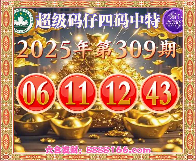 309期:『超级码仔』 🎯四码中特🎯【06.11.12.43】开:06准