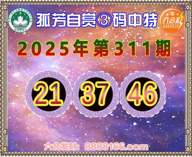 311期:《孤芳自赏》 🥽③码中特🥽【21.37.46】开:37准