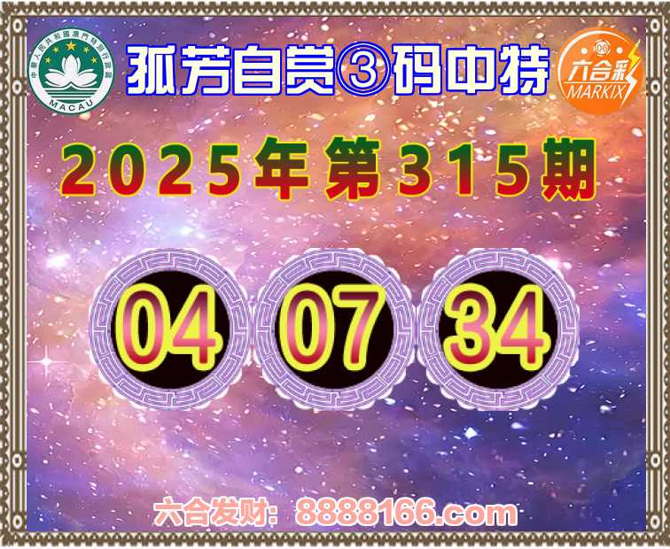 315期:《孤芳自赏》 🥽③码中特🥽【04.07.34】开:04准