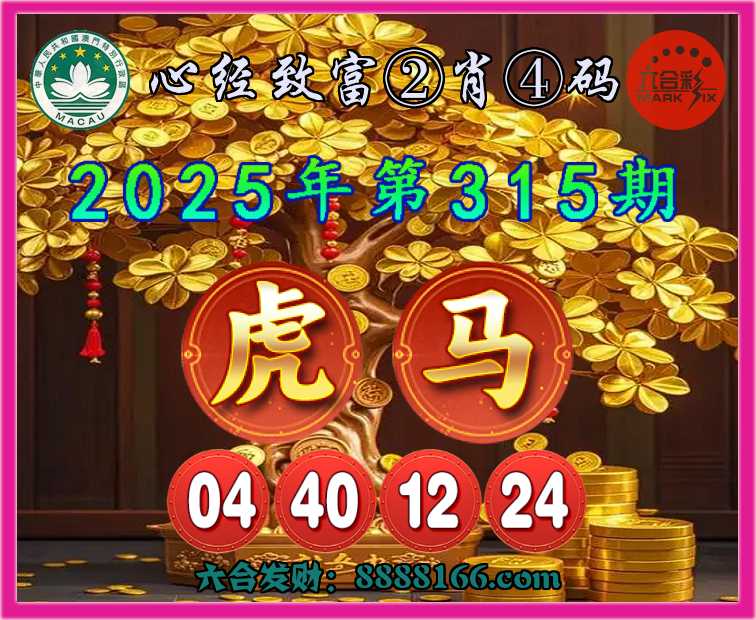 315期:《心经致富》 🌲②肖④码🌲【虎马】【04.40.12.24】开:虎04准