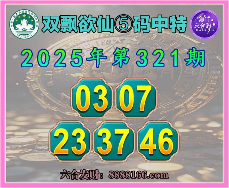 321期:〖双飘欲仙〗 🏵️⑤码中特🏵️【03.07.23.37.46】开:23准