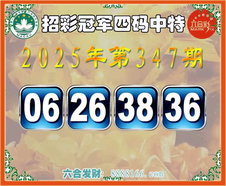 347期:《招彩冠军》 🤩四码中特🤩【06.26.38.36】开:13错
