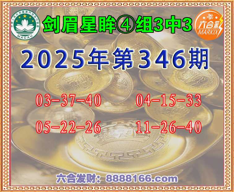 346期:《剑眉星眸》 ☘️④组3中3☘️