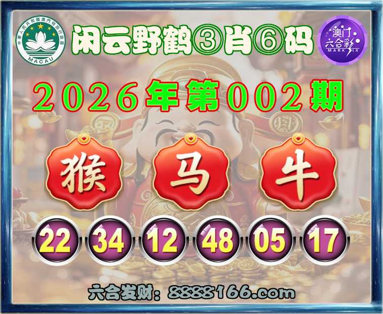 002期: 👩🌾《闲云野鹤》 👩🌾③肖⑥码👩🌾【猴马牛】开:猴22准
