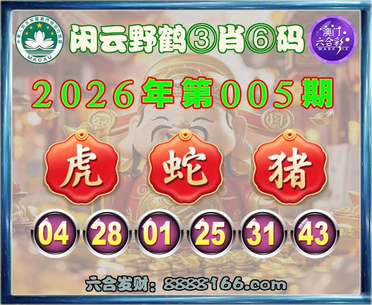005期: 👩🌾《闲云野鹤》 👩🌾③肖⑥码👩🌾【虎蛇猪】开:猪43准