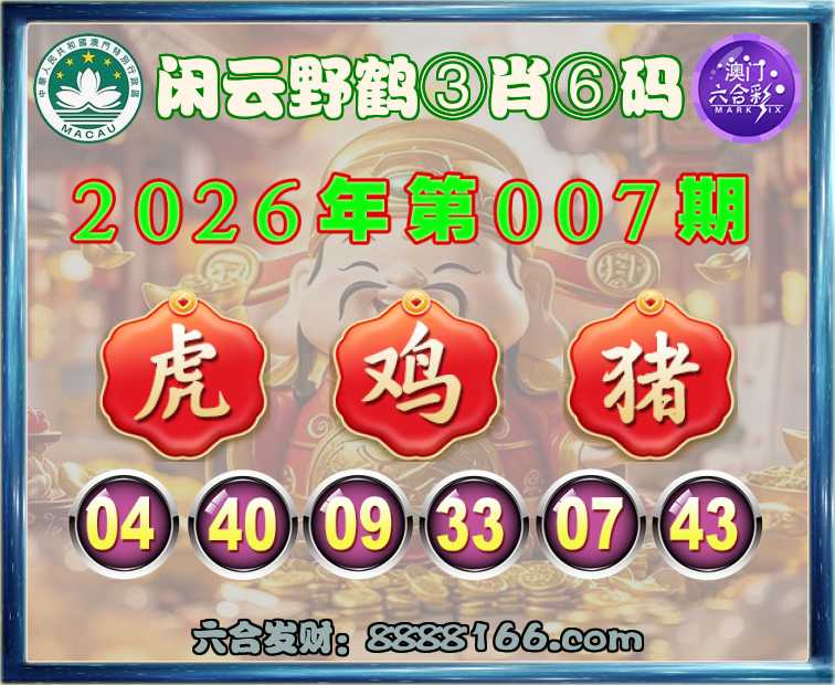 007期: 👩🌾《闲云野鹤》 👩🌾③肖⑥码👩🌾【虎鸡猪】开:牛41错