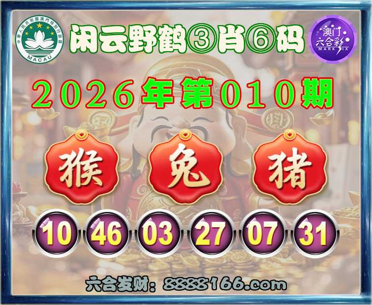 010期: 👩🌾《闲云野鹤》 👩🌾③肖⑥码👩🌾【猴兔猪】开:兔27准