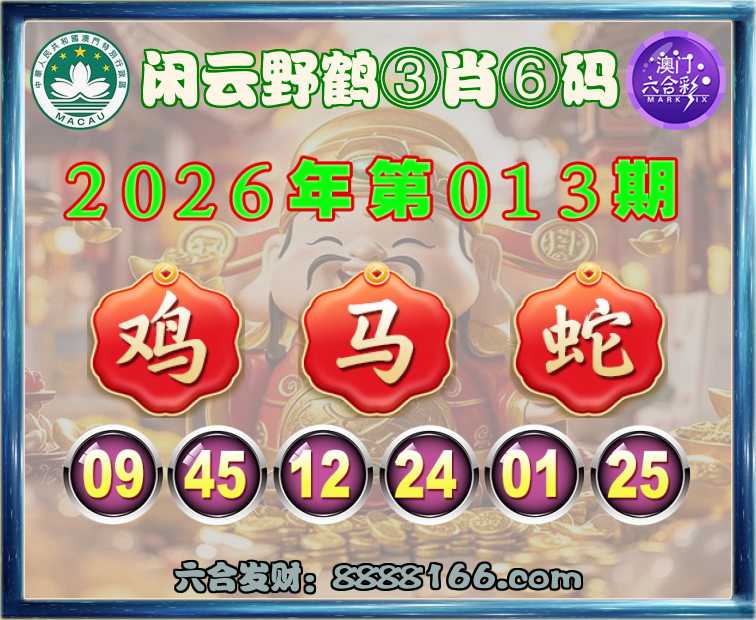 013期: 👩🌾《闲云野鹤》 👩🌾③肖⑥码👩🌾【鸡马蛇】开:蛇01准