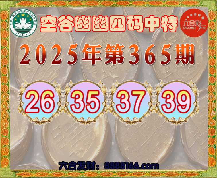 365期:『空谷幽幽』 🚡四码中特🚡【26.35.37.39】开:26准
