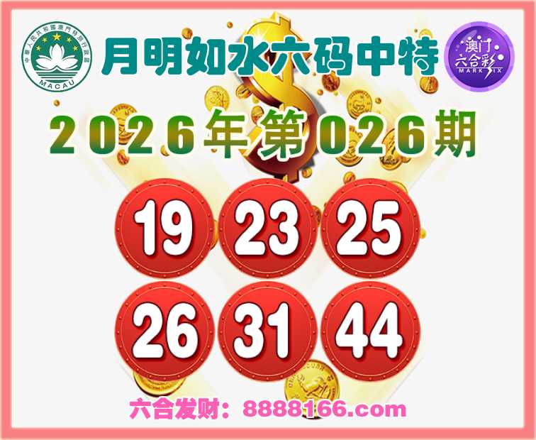 026期:『月明如水』 🍖六码中特🍖【19.23.25.26.31.44】开:19准