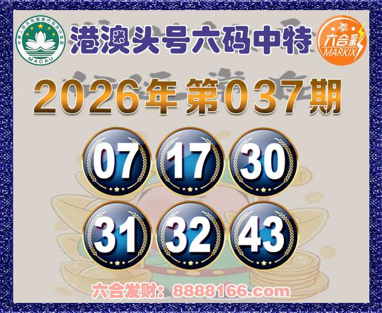 037期:【港澳头号】 🌳六码中特🌳【07.17.30.31.32.43】开:43