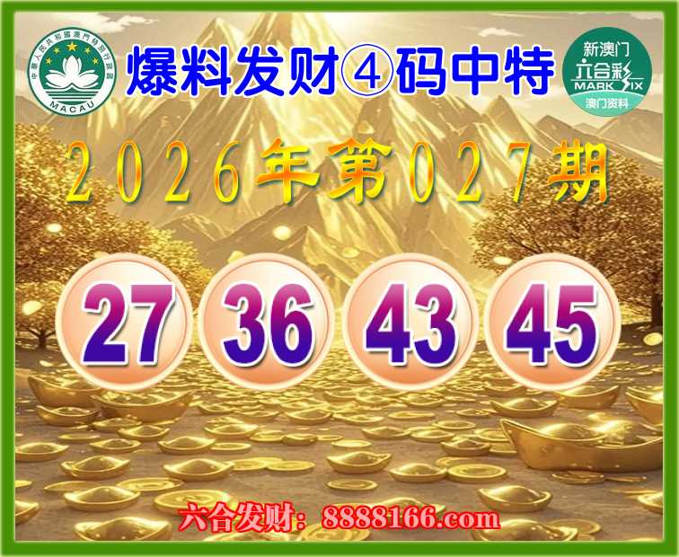 027期:《爆料发财》 🏆④码中特🏆【27.36.43.45】开:45