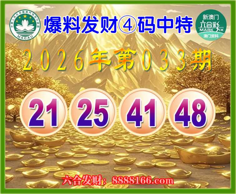 033期:《爆料发财》 🏆④码中特🏆【21.25.41.48】开:41