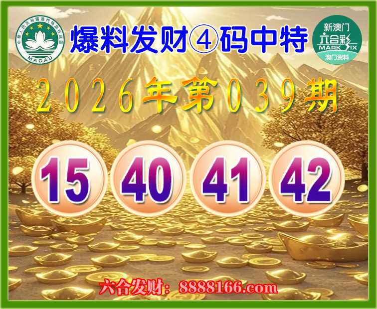 039期:《爆料发财》 🏆④码中特🏆【15.40.41.42】开:11