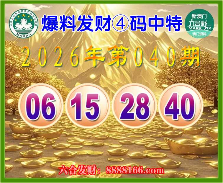 040期:《爆料发财》 🏆④码中特🏆【06.15.28.40】开:28